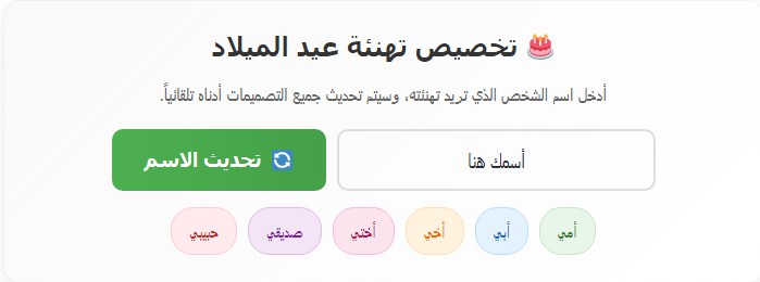 ثانيًا، اكتب الاسم داخل مربع النص بشكل صحيح، ثم اضغط على زر التحديث أو المعاينة. خلال ثوانٍ قليلة، سيظهر لك الاسم مكتوبًا على مجموعة من الصور الجاهزة.