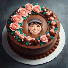 تورتة عيد ميلاد منعشة بصورتك وورود رقيقة