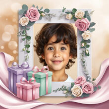 تصميم عيد ميلاد رقيق بصورتك وهدايا حلوة يا محبي الألوان الهادية والجمال البسيط! الحقوا شوفوا التصميم الحلو ده! إضافة صورة…