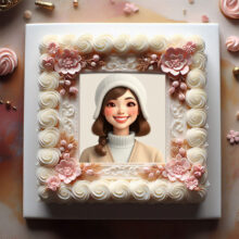 تركيب صورتك على التورته يا خراشي على الرقة والجمال! تخيل بقى تورتة عيد ميلاد باللون الأبيض الناصع ده، وعليها إطار…