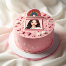 ضع صورتك على تورتة عيد ميلاد بينك بقوس قزح وقلوب