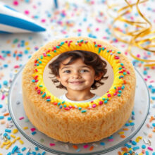 ضع صورتك على تورتة عيد ميلاد صفراء دائرية بالاسبرينكلز