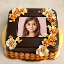 ضع صورتك على تورتة عيد ميلاد مربعة بالشوكولاتة الغنية
