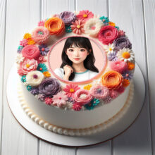 إضافة صورة على تورتة عيد ميلاد بإطار كريمي وورود