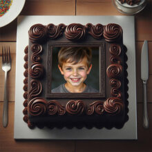 ضع صورتك على تورتة عيد ميلاد مربعة بالشوكولاتة وإطار أنيق